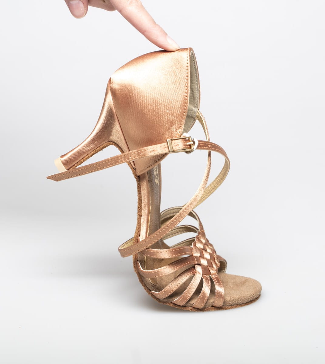 ✔ Satynowe wykończenie w kolorze cielistym ciemnym – klasyczny odcień, który pięknie prezentuje się na parkiecie i pasuje do każdej stylizacji.