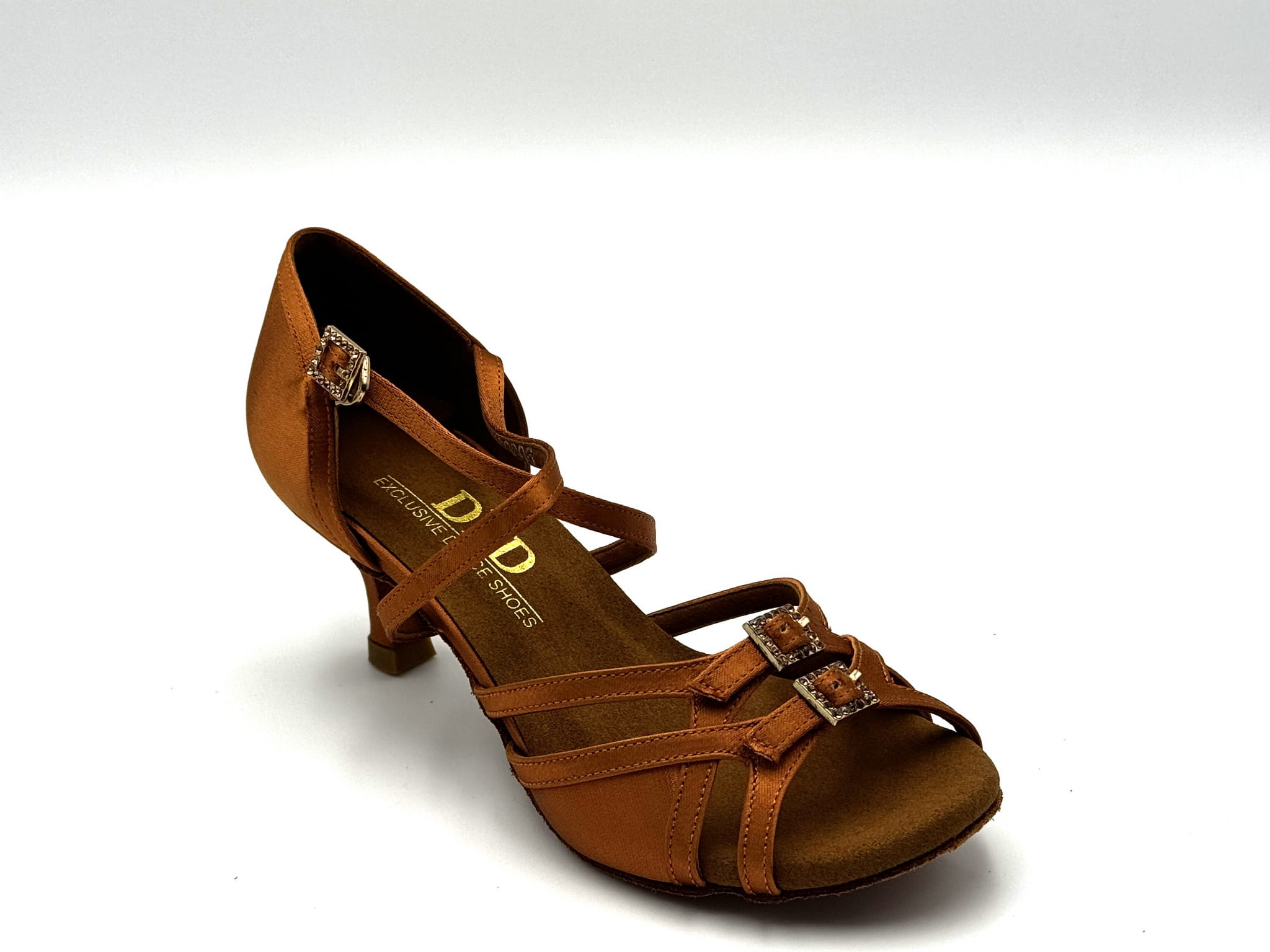 Wykonane z satyny, paski zapewniają doskonałe trzymanie stopy. Zapinane na elegancki, skrzyżowany pasek, oplatający podbicie i podeszwę gwarantuje pewność podczas każdego ruchu na parkiecie. Dzięki swojej elegancji, buty te mogą być również doskonałym wyborem na specjalne okazje.