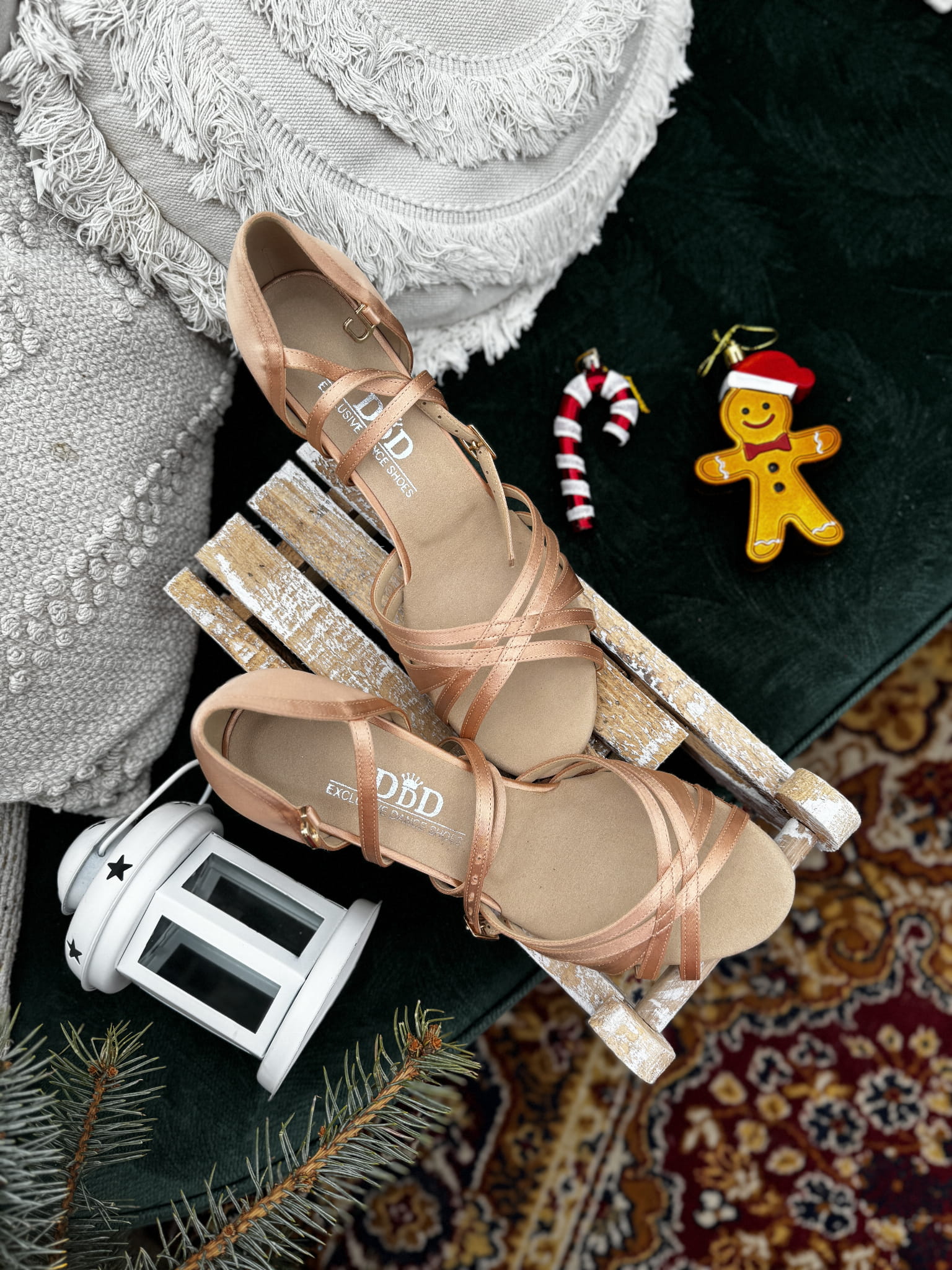 Wykonane z satyny, paski zapewniają doskonałe trzymanie stopy i zabezpieczają przed wysuwaniem się stopy do przodu. Zapinane na elegancki, skrzyżowany pasek, oplatający podbicie i podeszwę lub kostkę, gwarantują pewność podczas każdego ruchu na parkiecie. Dzięki swojej elegancji, buty te mogą być również doskonałym wyborem na specjalne okazje, takie jak wesele – stanowią idealną alternatywę dla klasycznych butów.