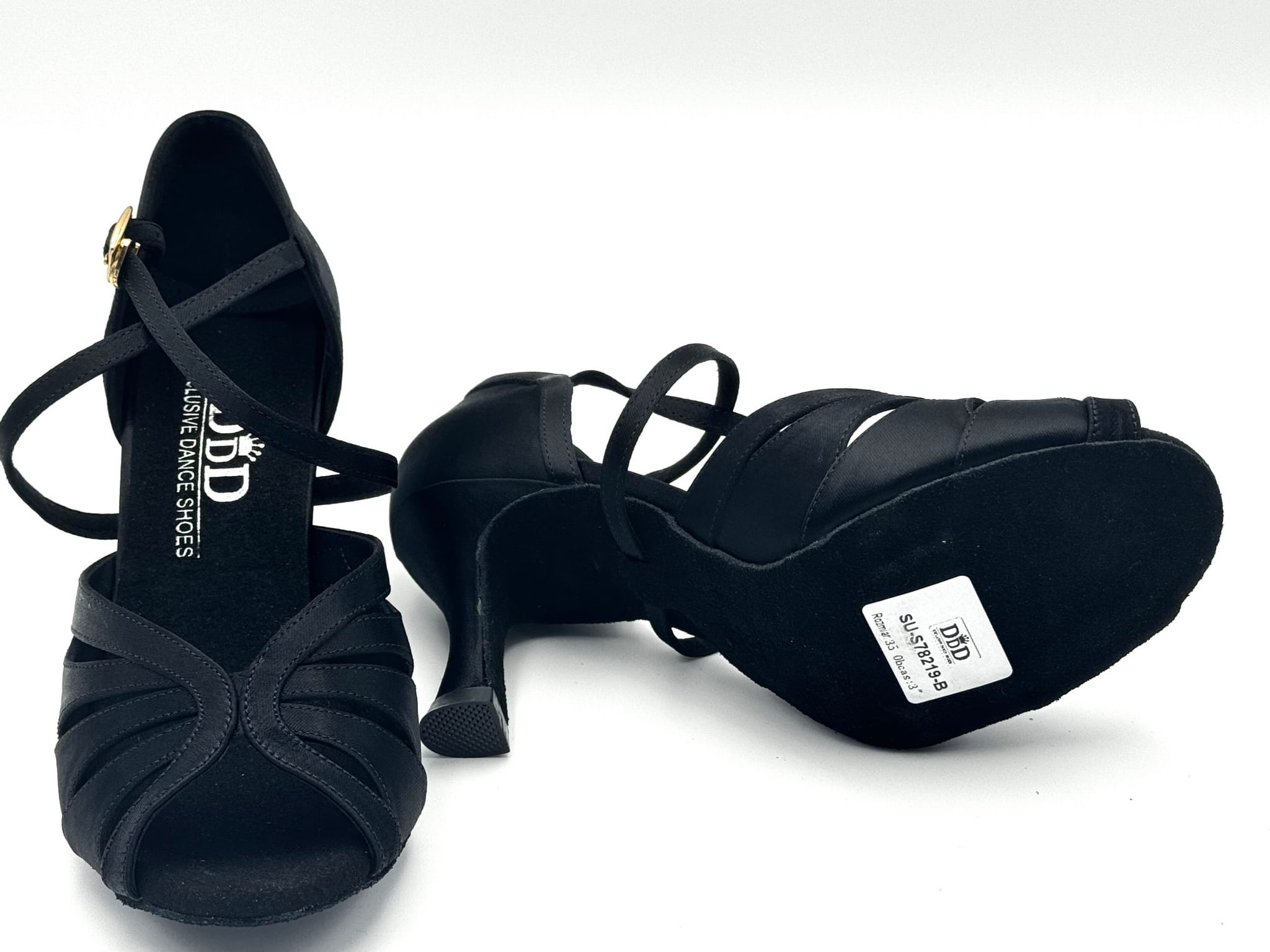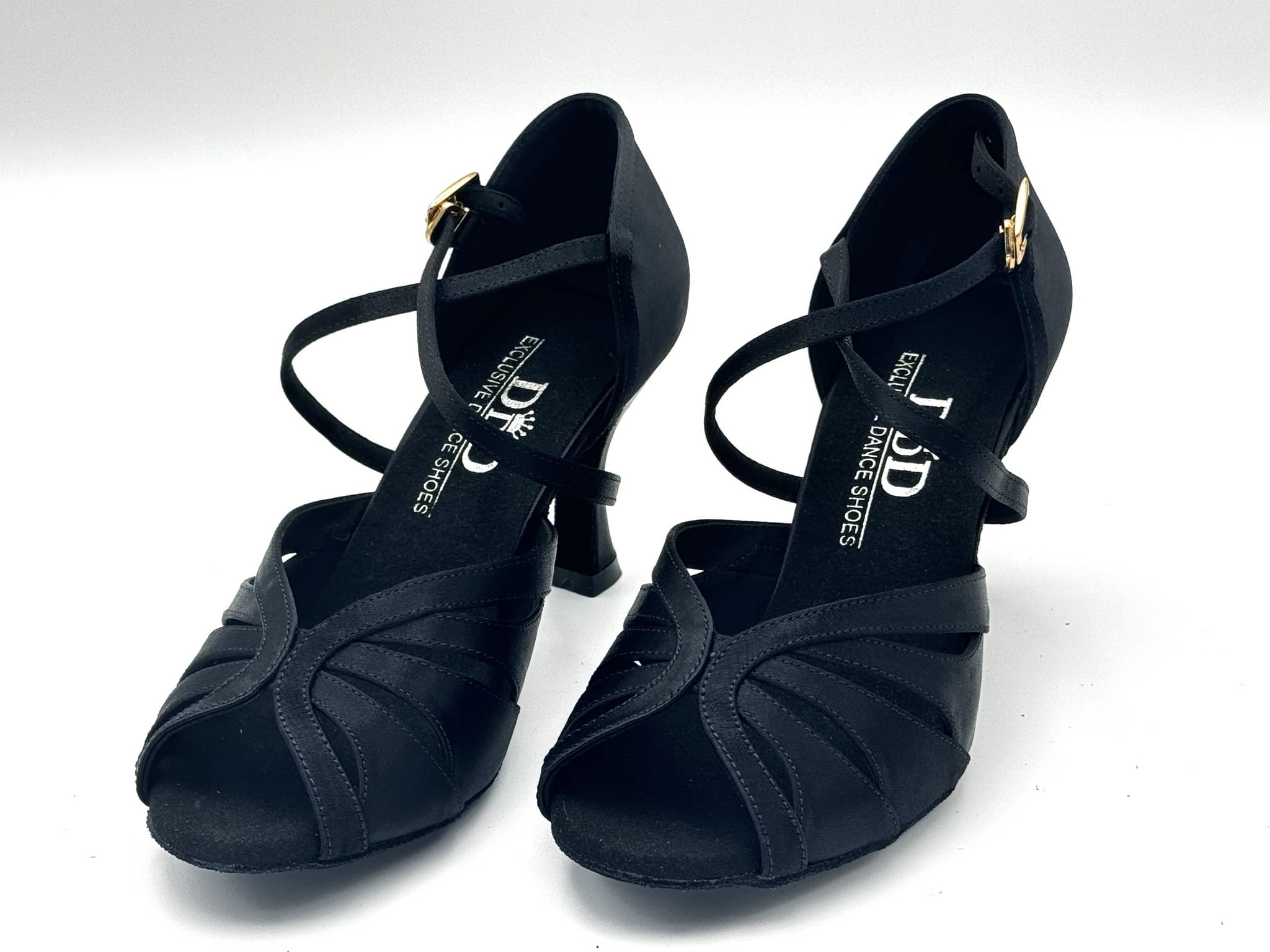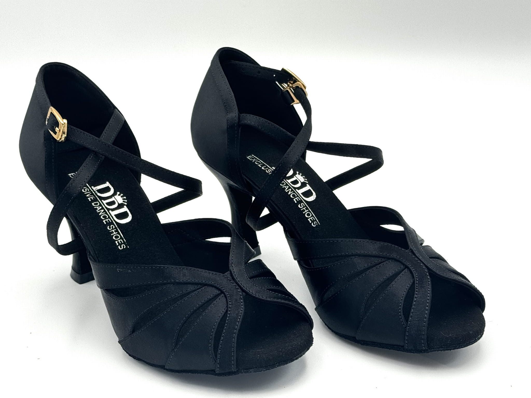 Wykonane z czarnej satyny, paski zapewniają doskonałe trzymanie stopy. Zapinane na elegancki, skrzyżowany pasek, oplatający podbicie i podeszwę gwarantuje pewność podczas każdego ruchu na parkiecie. Dzięki swojej elegancji, buty te mogą być również doskonałym wyborem na specjalne okazje.