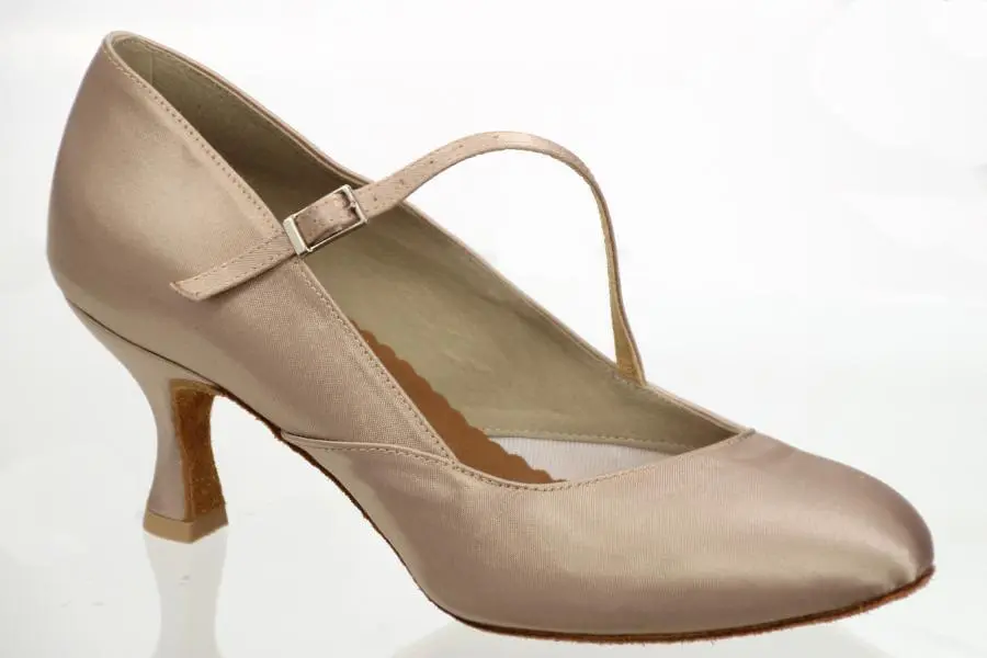 Klasyczna i delikatna satyna angielska sprawia, że buty prezentują się niezwykle subtelnie i elegancko, a zarazem pasują do większości strojów tanecznych.
